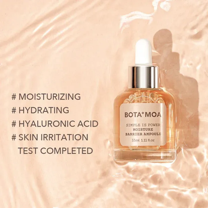 BOTA·MOA Moisture Barrier Ampoule нь гиалуроны хүчил болон ургамлын ханд агуулсан, арьсыг гүн чийгшүүлж хамгаалалтын давхаргыг бэхжүүлэх ампул юм. Хуурайшилт, эмзэгшлийг багасгаж, арьсыг зөөлөн, уян хатан, толигор харагдуулахад тусална.