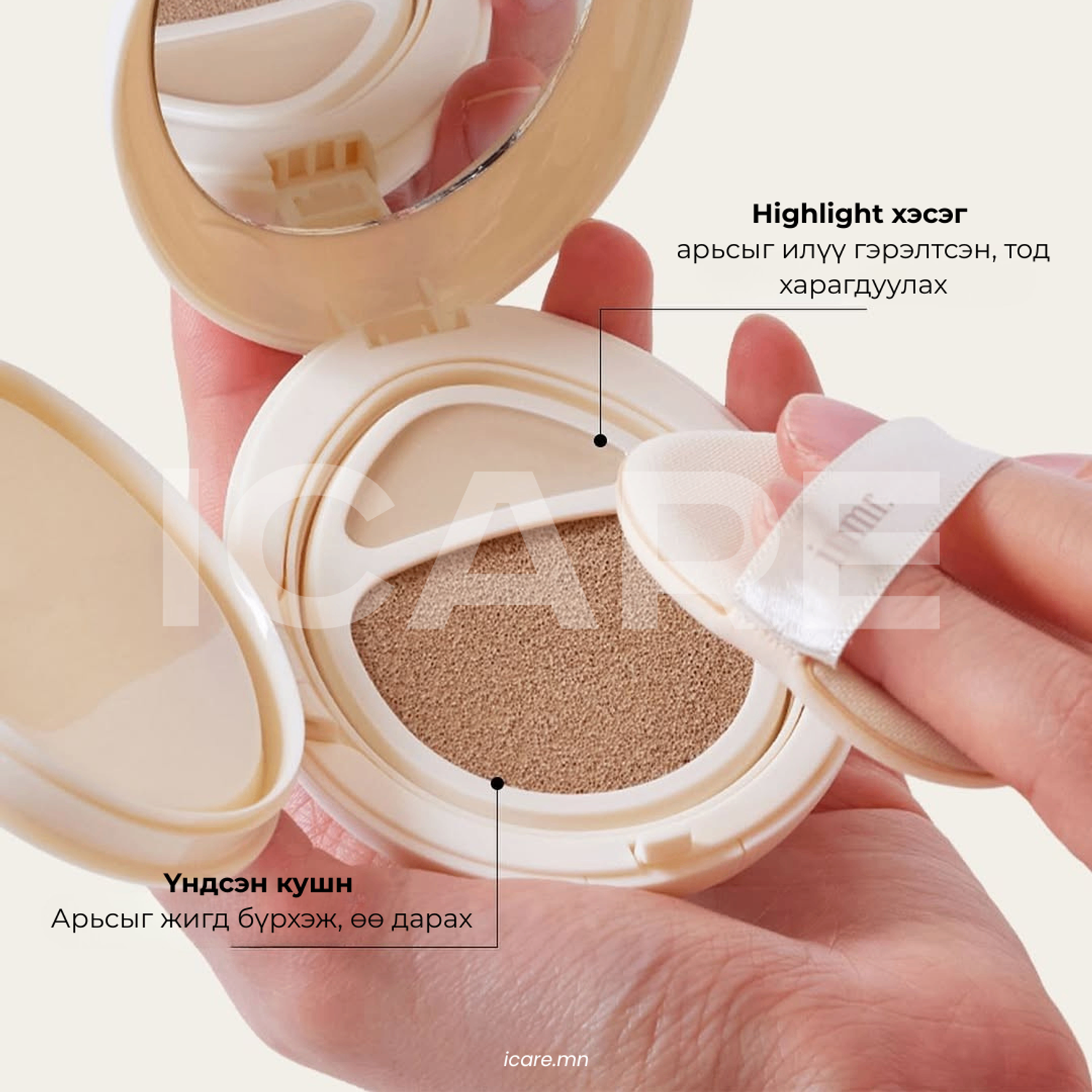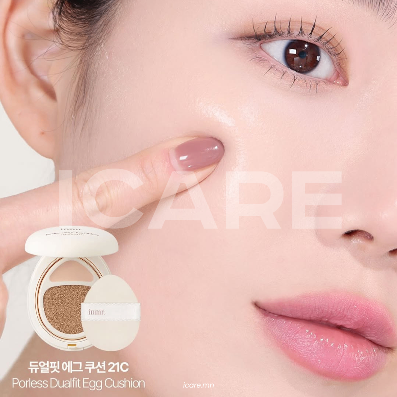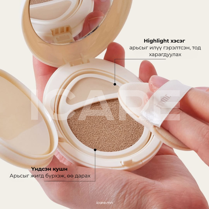 INMR Poreless Dualfit Egg Cushion нь арьсыг жигд, толигор бүрхэж, нүхжилт харагдуулахгүй, байгалийн гэрэлтсэн төрхийг бүтээнэ. Хөнгөн, наалдамхай биш бүтэц нь өдөржин тухтай мэдрэмж төрүүлж, SPF50+ PA+++ хамгаалалттай тул нарны хорт туяанаас давхар хамгаална.