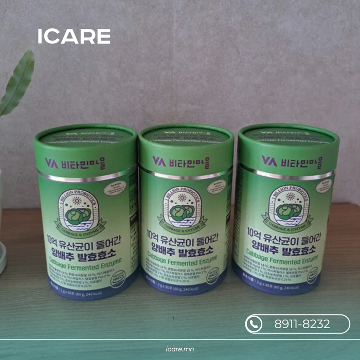 Cabbage Fermented Enzyme нь байцааг исгэж гарган авсан фермент болон ашигтай бичил биетнээр баяжуулсан бүтээгдэхүүн юм. Хоолны дараах гэдэс дүүрэх, хүнд оргих, хүчил ихсэх зэрэг тавгүй мэдрэмжийг багасгаж, хоол боловсруулалтыг дэмжихэд зориулагдсан.